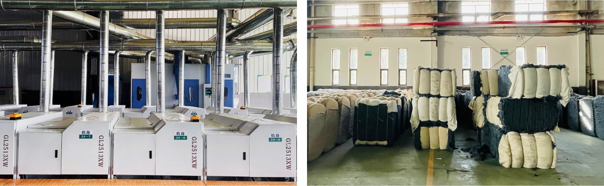 The company closely follows the trend of the "carbon peak and carbon neutrality" era, fully relying on the advantages of the group's circular industry system. By establishing a diversified recycling system of "online + offline", it utilizes advanced technical equipment to scientifically and efficiently carry out comprehensive recycling and reproduction of waste textiles, including recycling, professional sorting, physical opening, and elastic cleaning.